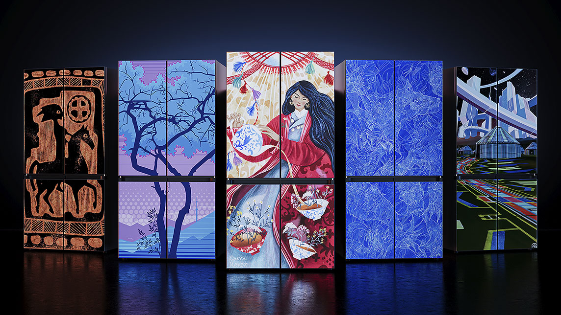 The idea is to showcase the refrigerator as a work of art, we collaborated with talented Kazakh artists to develop a limited edition Bespoke FDR refrigerator series.